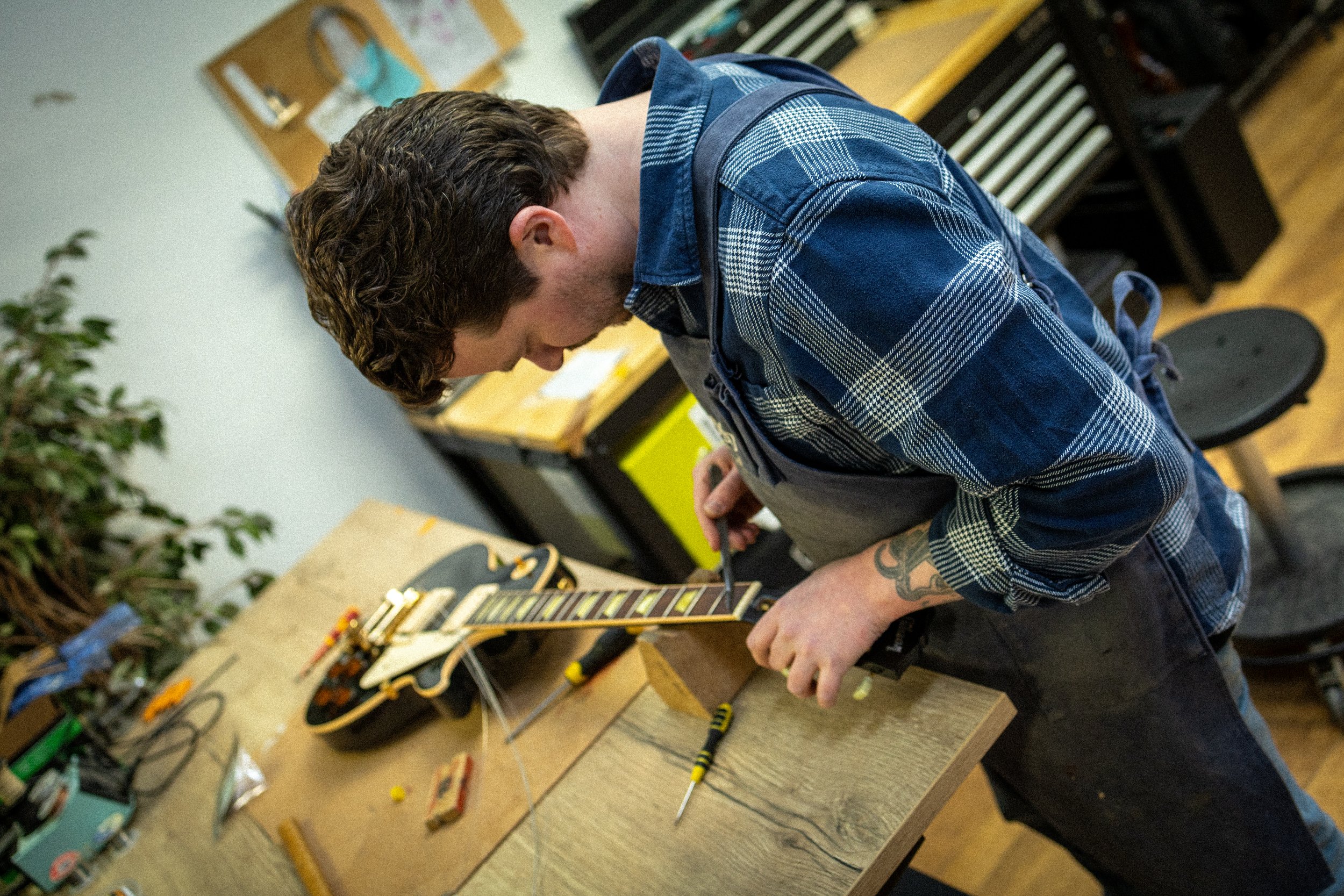 Je kunt bij mijn werkplaats terecht voor reparaties, restauraties en het customizen van gitaren. Dat geldt voor zowel akoestische als elektrische gitaren en voor zowel vintage instrumenten als moderne gitaren.